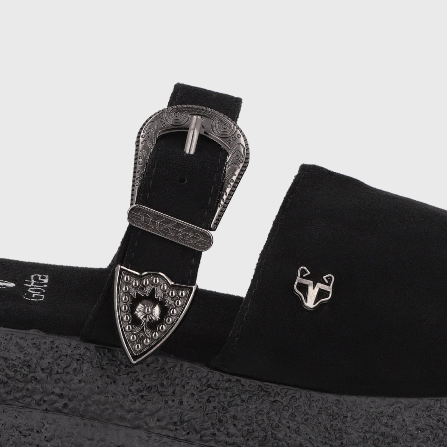 La plataforma alta de esta sandalia negra es el detalle que la convierte en un must-have para un look audaz y con personalidad. Su diseño chunky aporta altura y un aire rebelde que se ve increíble con pantalones cargo, faldas midi satinadas o incluso un total look negro para un estilo edgy y sofisticado. Una pieza que eleva al instante cualquier outfit urbano con un toque fashionista.